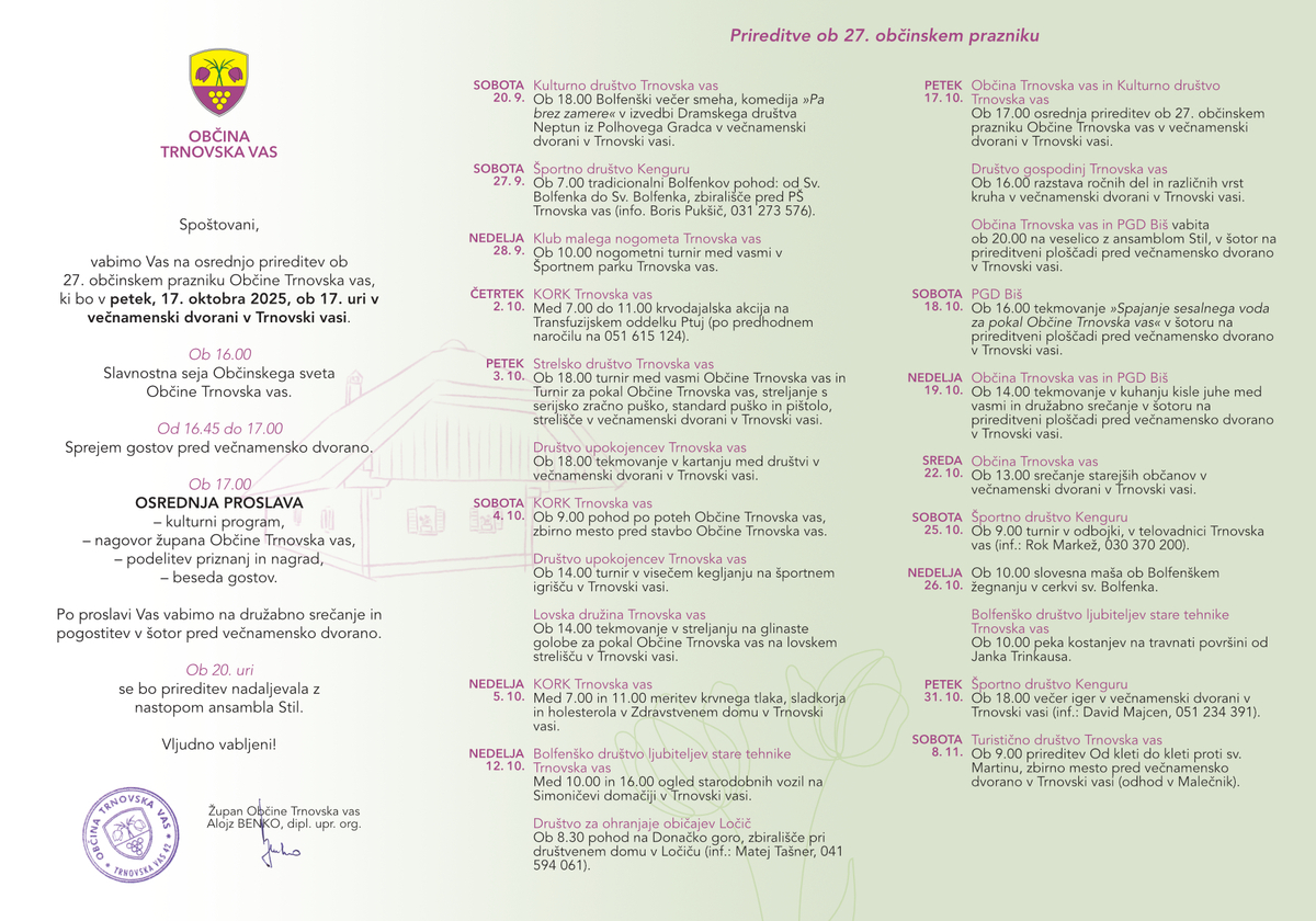 PRIREDITVE OB 27. OBČINSKEM PRAZNIKU OBČINE TRNOVSKA VAS